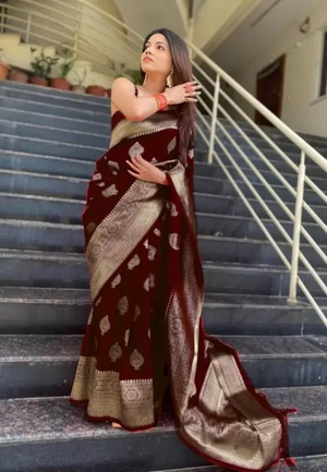 | Item :- | Kishoree Maroon Banarasi Silk Saree |