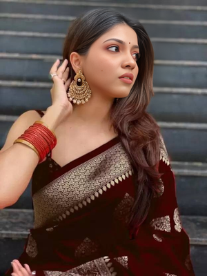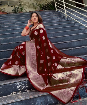 Kishoree Maroon Banarasi Silk Saree