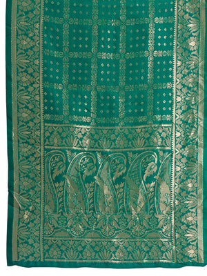 Kishoree Red Banarasi Lehenga with Mustard Zari Dupatta