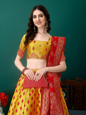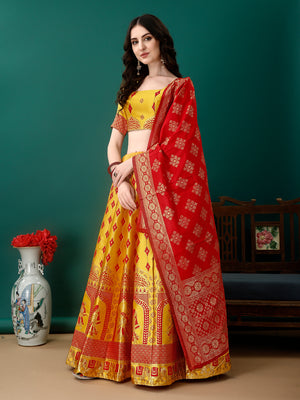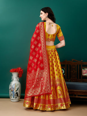 | Item :- | Kishoree Red Banarasi Silk Lehenga Choli with Zari Dupatta |