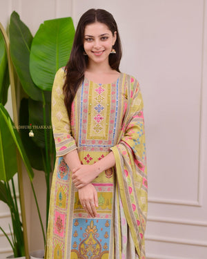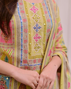 | Item :- | Krishoree's Yellow Kurti and Pant & Dupatta Set |